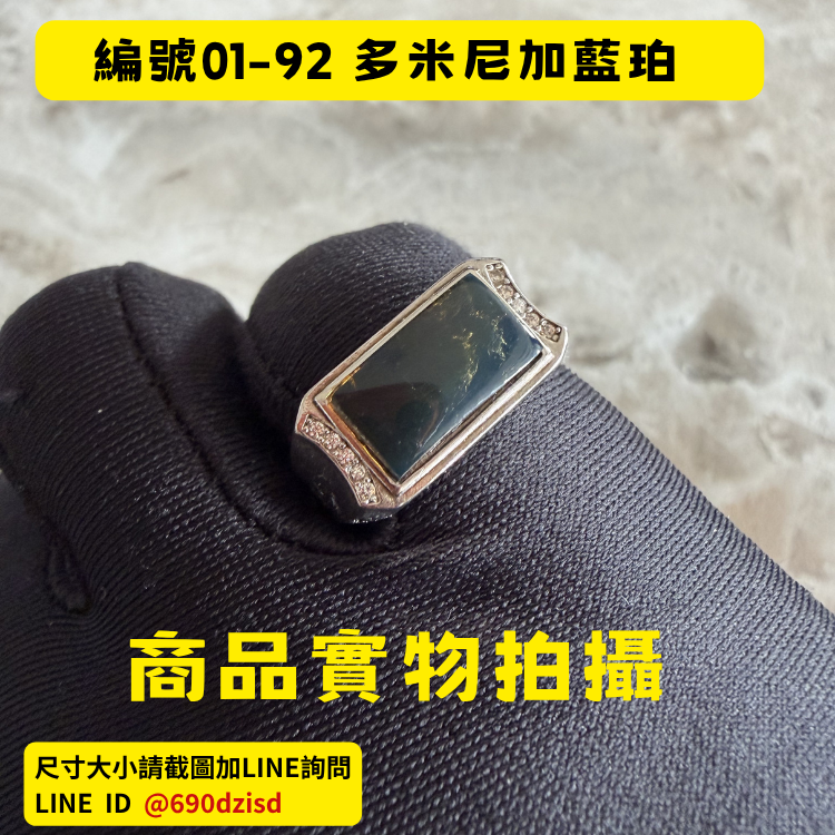 1️⃣ 本商品為天然多米尼加藍珀S925男戒活圍、主石大小請訊息或官方詢問。